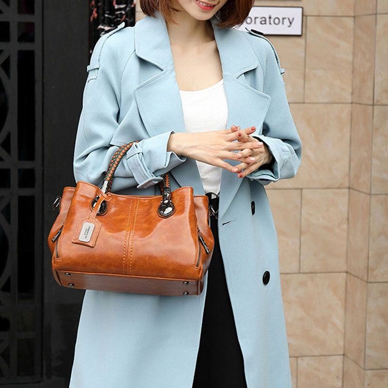 Vintage Håndveske For Dame Oljevoks Lær Trelags Crosssbody-veske