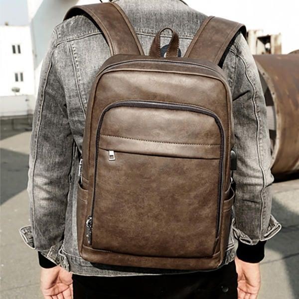 Vintage Lær Laptopveske For Herre Reiseryggsekk Skulderveske