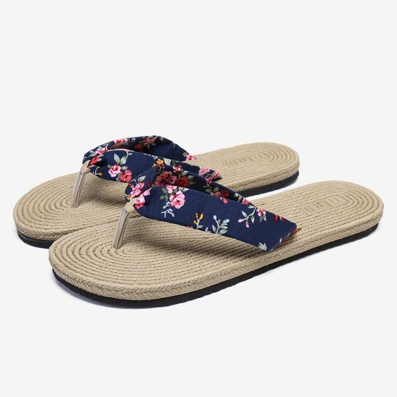 Womens Clip Toe Floral Massasjesåler Beach Flats Sandaler